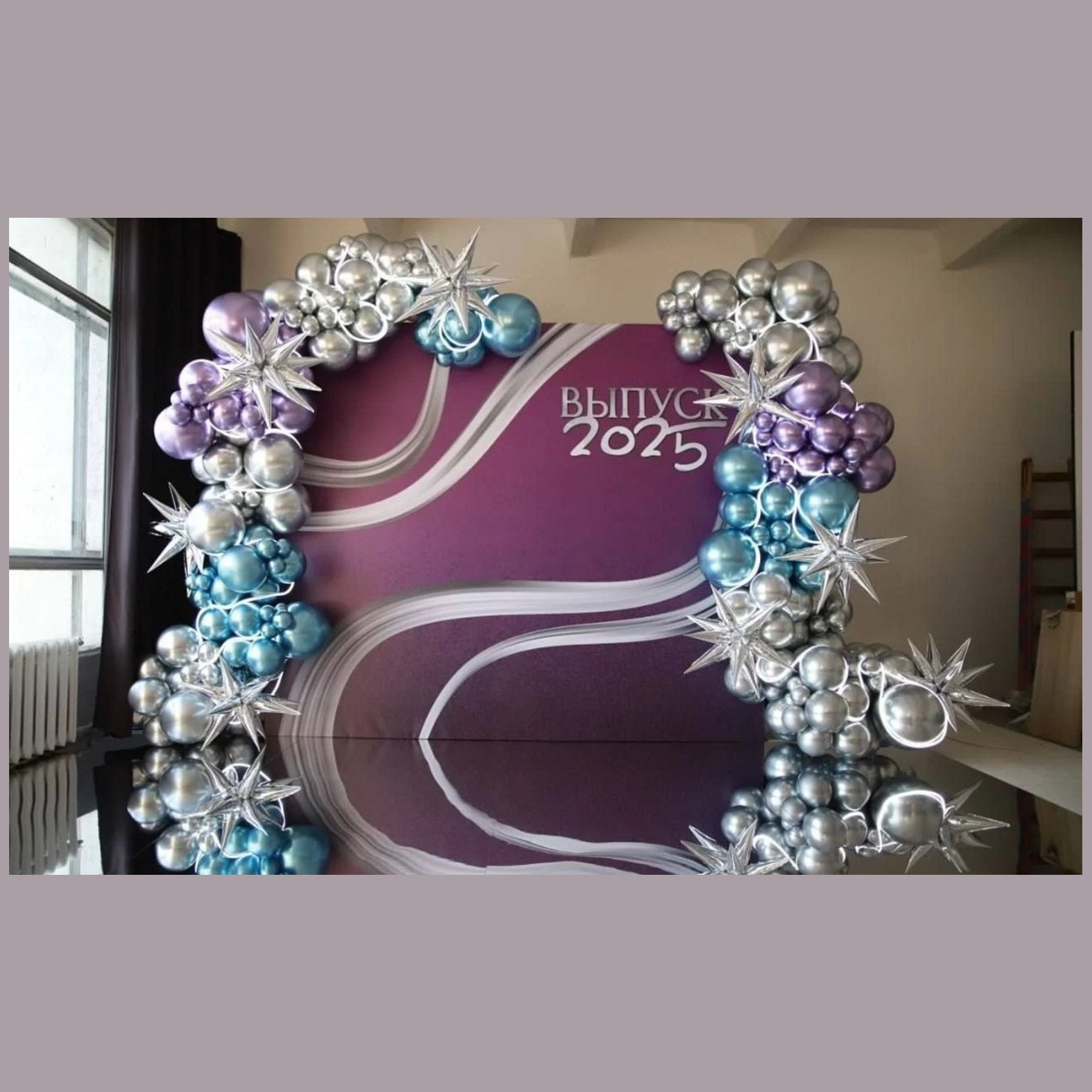 ---------------------------------------------------------------------------Средняя цена фотозоны с круглым баннером и шарами по периметру — 13 000