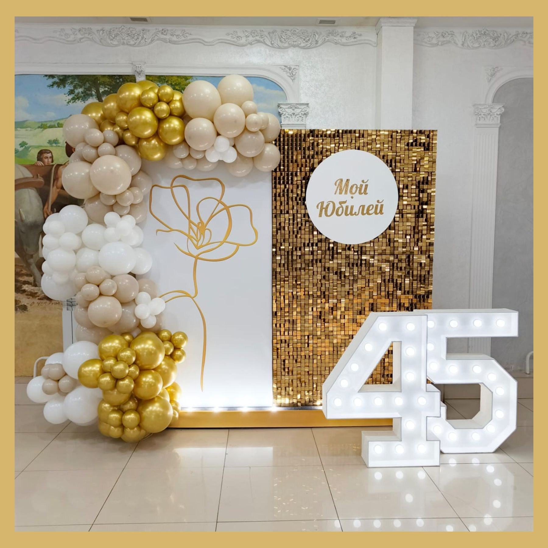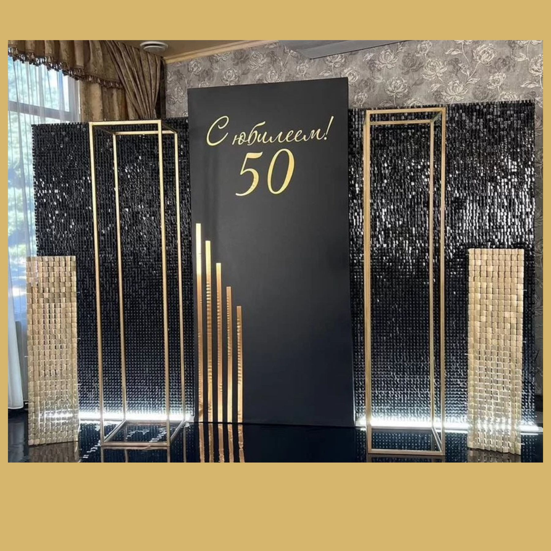 Часто, фотозона из блоков состоит из части, куда входят пайетки, черного, золотого или серебряного цвета.
