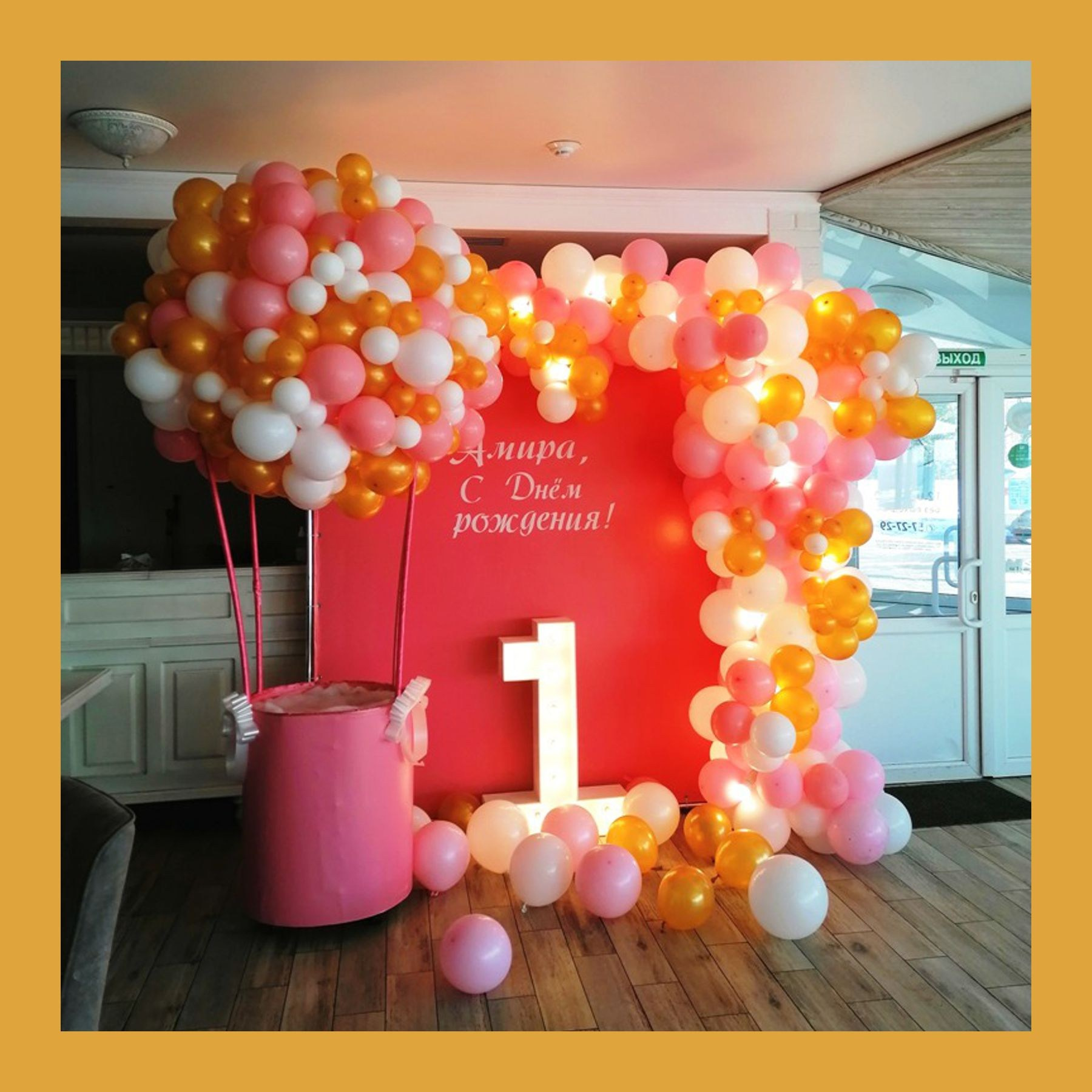 Часто воздушный шар дополняют, цифрой, буквой, гирляндой из воздушных шаров. А так ж, это прекрасное дополнение тематического фона.